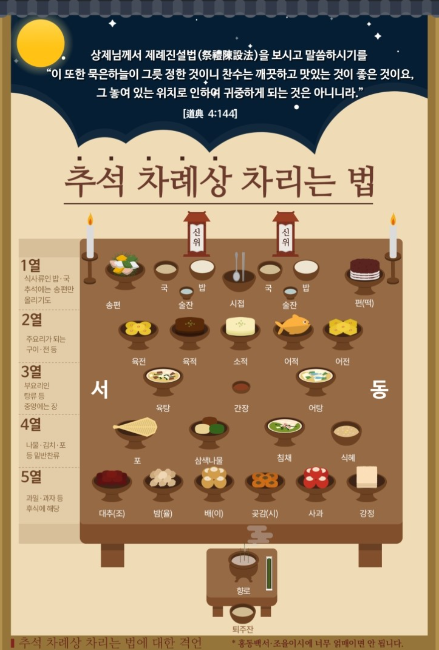 차례를 지낼 때마다 헷갈리는 순서들이 한두가지가 아닐 겁니다. 기존에 전통적인 틀은 있되, 부모와 조상을 섬기는 마음이 전해진다면 그것에 의미가 있을 것입니다. 가족들과 만나서 즐거운 시간 보내시며 건강히 한가위 지내시길 바랍니다. 모두 행복하세요!